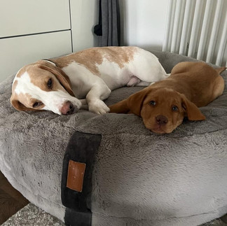 Louis ist nun seit knapp 5 Wochen bei uns und er entwickelt sich super. Er hat einen sehr ausgeprägten Folgetrieb, was ihm den Urlaub hier in Domburg sehr leicht macht. Er ist super unkompliziert und tiefenentspannt. Mit unserem Harvey versteht er sich auch bestens und die zwei sind berei
